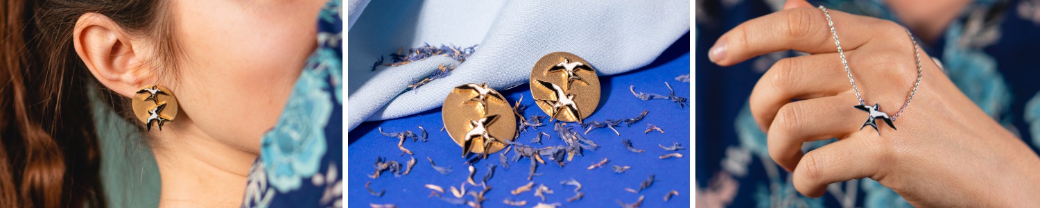 Võrratud ülekullatud hõbedast kõrvarõngad Suitsupääsukese kollektsioonist. Suitsupääsuke kui Eesti rahvuslind. Kanna killukest Eesti ilust endaga iga päev.