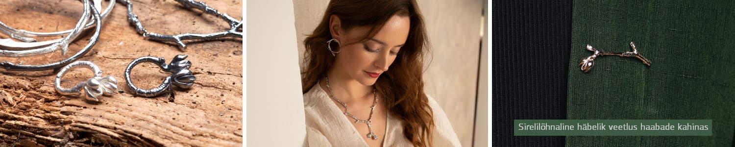 Kaunid loodusest inspireeritud kõrvarõngad "Haru" kollektsioonist Võsailu. Võsailu kollektsiooni illustreerib mõte: sirelilõhnaline häbelik veetlus haabade kahinas. Ehe pannakse teele Lummuse signatuurkarbis.